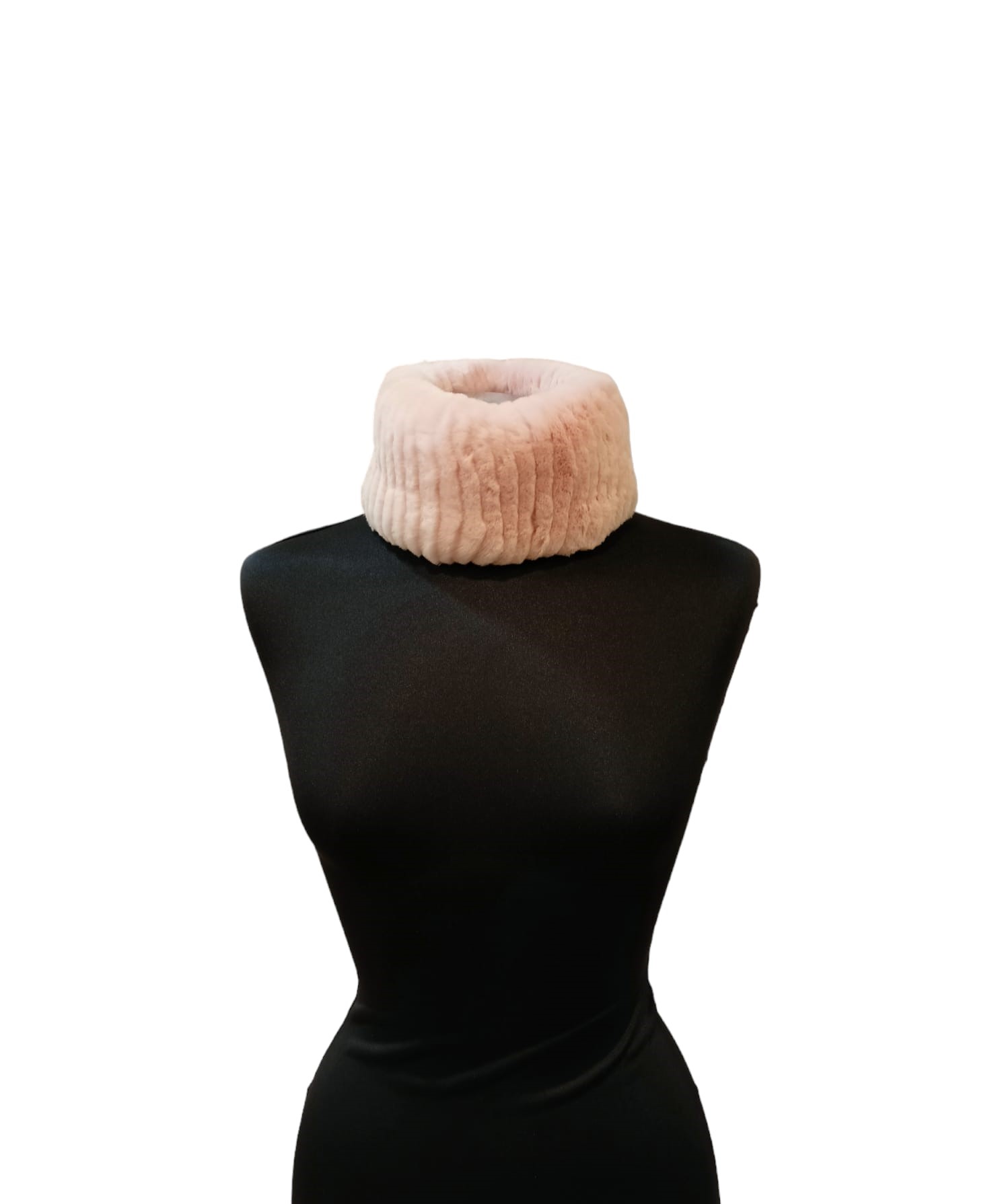 Fascia e scaldacollo in rex rosa elasticizzato che arricchisce il vostro capospalla e dona colore e calore alla testa