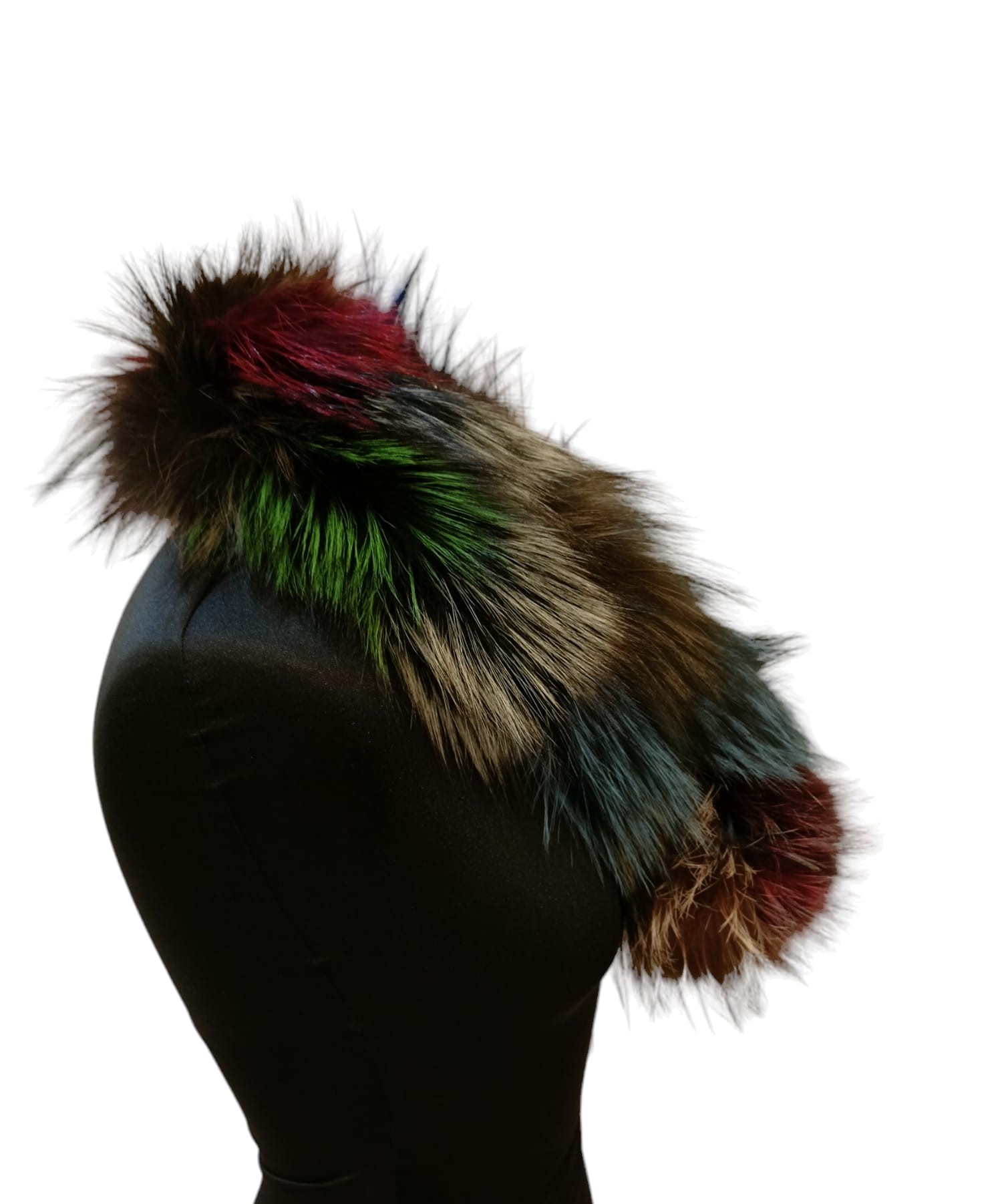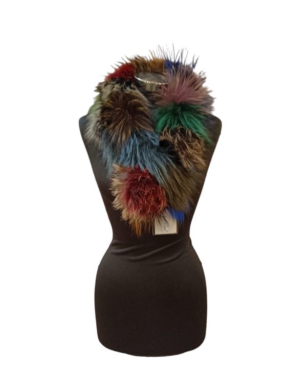 Sciarpa in volpe argentata tinta multicolor con bonbon in punta e asola per far combaciare le estremità come nella foto. Morbida ed elegante arricchisce qualsiasi capospalla abbinandosi a tutti i colori grazie alla sua policromia